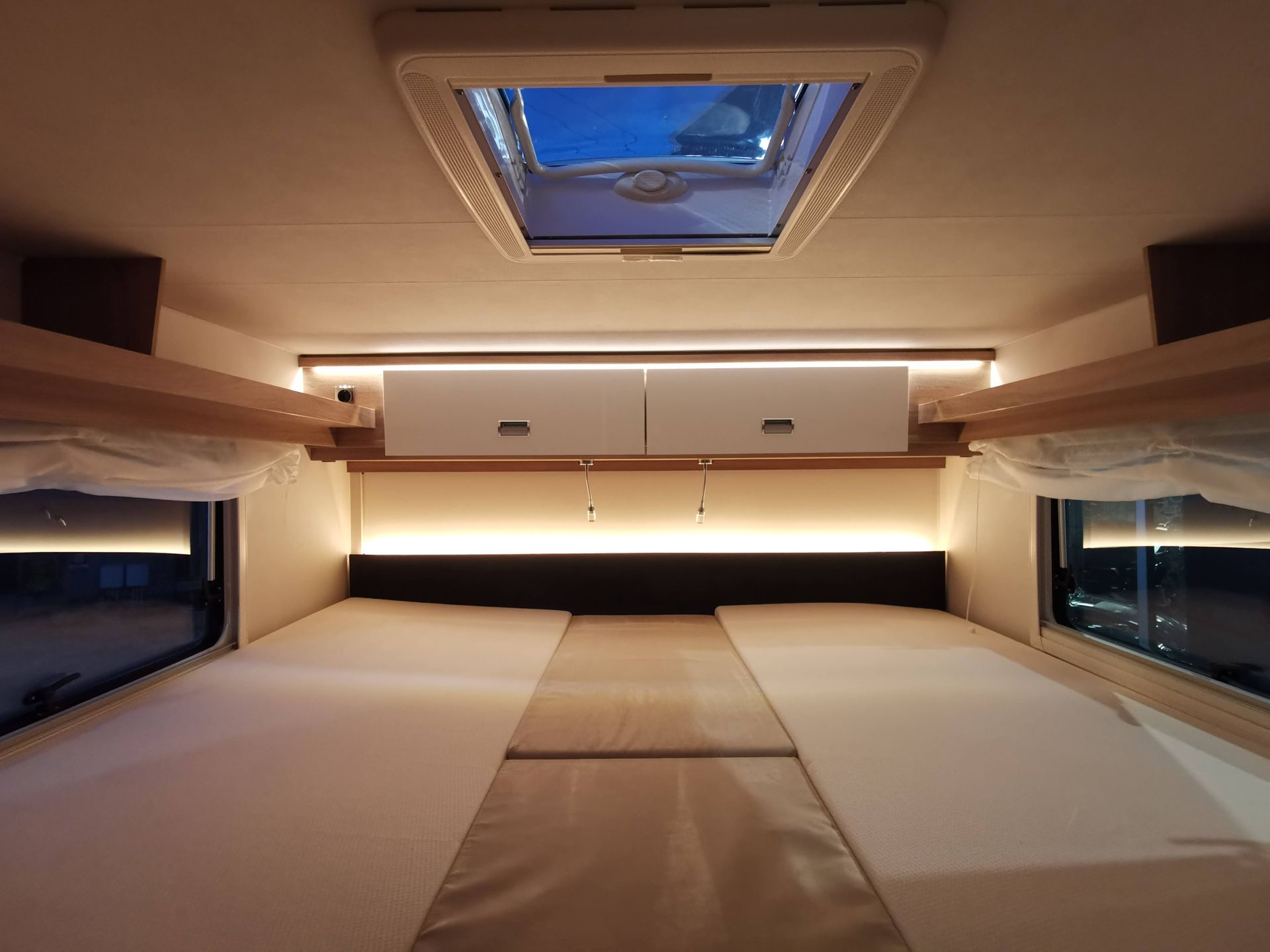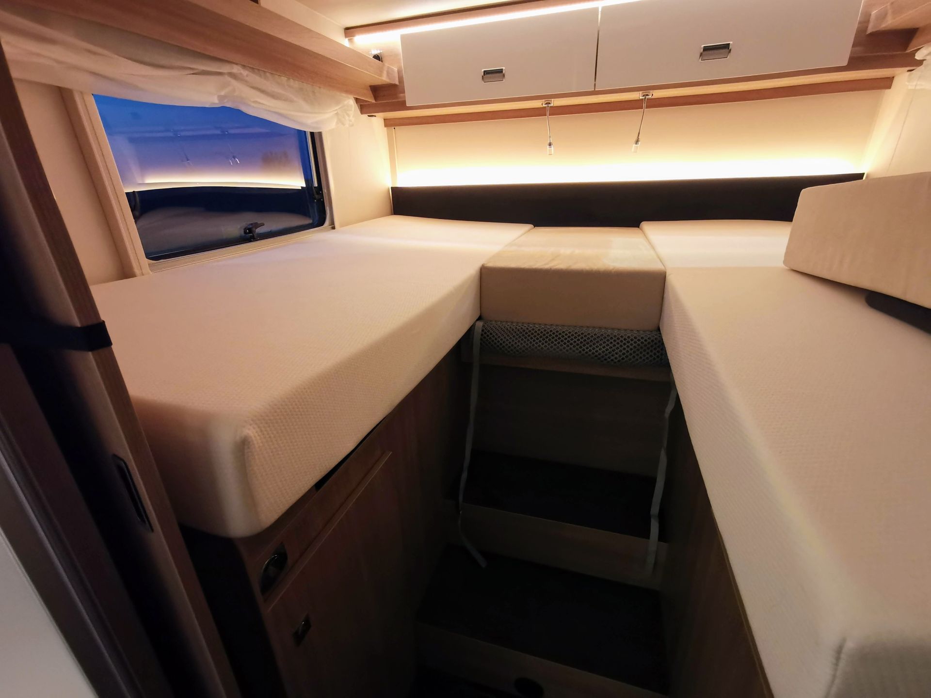 All'interno, troverai letti gemelli trasformabili in un comodo matrimoniale, un letto basculante elettrico, cucina ad L completamente attrezzata e bagno con doccia separata. Ogni dettaglio è pensato per offrire un'esperienza di viaggio senza pari.
