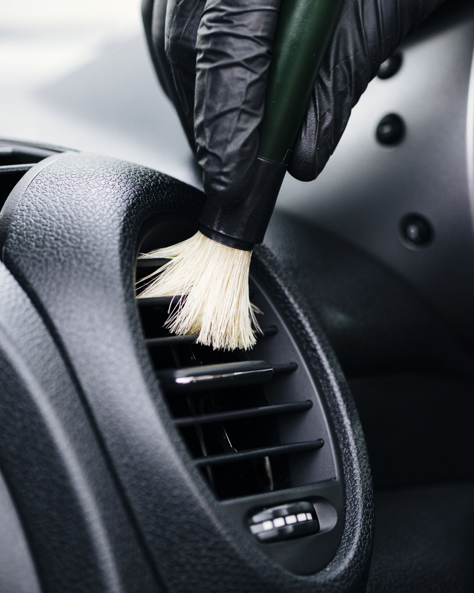 Ogni pulizia inizia con un'aspirazione completa dell'abitacolo, seguita dall’uso di detergenti e sanificatori specifici per le plastiche interne, in grado di rimuovere polvere, residui e germi. Proseguiamo con un attento controllo e lavaggio della moquette, per poi occuparci dei vetri interni, degli specchietti, della radio e delle cromature, che vengono trattati con cura per restituire trasparenza e brillantezza. Infine, tappetini e rivestimenti vengono aspirati e igienizzati a fondo.